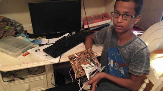 Giunto a scuola. nella cittadina di Irving, ansioso di mostrare la sua creazione agli insegnanti, invece di ricevere le loro lodi, ha ricevuto da loro una denuncia per cui è stato ammanettato e arrestato.