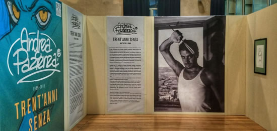 (Foto di Emanuele Giampaolo) Video, sketch, pezzi inediti, sue frasi cult…Tutto si articola in un percorso che apre i battenti con la figura in primo piano dello stesso Pazienza, l’abbozzo della sua più popolare e controversa figura, Zanardi, ed un manifesto che ricorda agli amatori che 30 anni senza il “nostro” sono davvero tanti. E fin qui, da cronista diligente, ho raccontato una storia che vale la pena visitare, per guardare da vicino la bellezza vera.