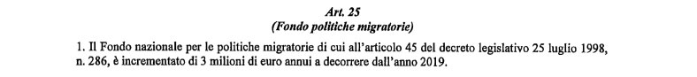 Grande escluso dal DEF: il taglio alle pensioni d’oro. Ma anche le risorse – 180 milioni distribuiti in un triennio – chieste dal Ministro per le Infrastrutture e i Trasporti Danilo Toninelli, su sollecitazione del Sindaco di Roma Virginia Raggi, per l’annoso problema della manutenzione stradale e delle buche, che nella capitale creano non pochi problemi e persino decessi, sono state depennate dal DEF. Nulla di fatto anche per ciò che riguarda il tavolo per il contrasto al caporalato: depennato dal DEF. Però, tra i finanziamenti si legge un aumento, pari a tre milioni di euro, per l’immigrazione e le politiche di inclusione. Cosa ne pensa Salvini? Ecco l’articolo 25 del DEF: