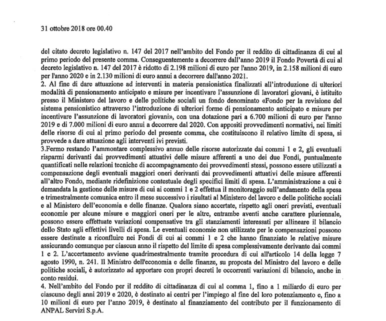 Dichiarazioni di Giorgetti pubblicate su RaiNews del 31 Ottobre 2018 Ecco cosa recita l’articolo 21 del DEF: