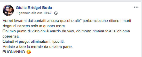 (uno dei post più recenti su Bonanno pubblicati dalla Bodo sul suo profilo Facebook) Sannino oltre a esprimere solidarietà alla Bodo, ha definito Buonanno "un razzista, vivo o morto che sia", un uomo "che ha solo seminato odio, come tanti, come Hitler, Mussolini tanto per citare qualcosa da quelle parti, morti o vivi come il fascista Matteo Salvini".
