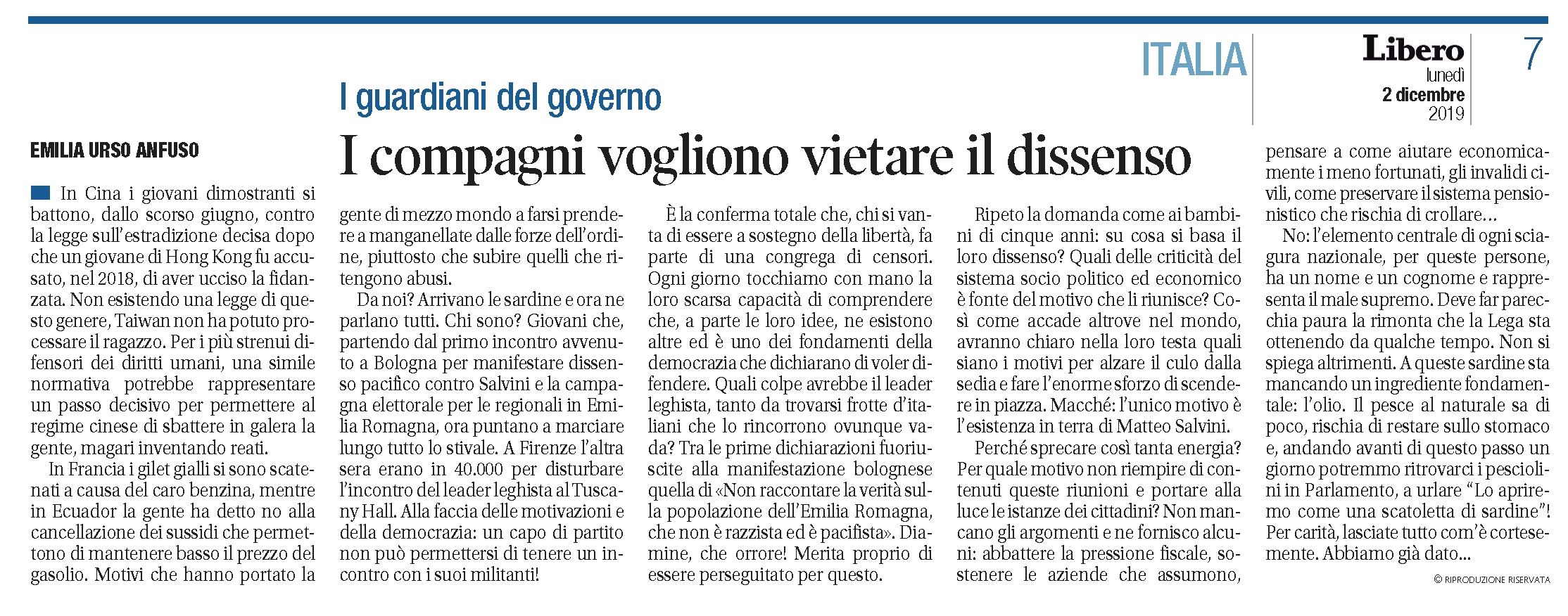 Alla fine è accaduto e chi vuole intendere intenda. La parabola del movimento popolare spontaneo scivola sull’incontro tra il capo sarde, Matteo Santori, e i Benetton. Non è un caso di omonimia. Benetton, quelli delle Autostrade. Quelli che controllano Altantia. Ma come, le sardine non erano contro i poteri forti? Le sarde non dicevano di non voler avere nulla a che fare con la politica. Diamine: nemmeno un paio di mesi e si sono già montati la testa. Dopo i ringraziamenti slinguettanti di Zingaretti alle sardine, per aver ben sostenuto la vincita di Bonaccini, ecco che il movimento ittico, o meglio i leader, arrivano non solo a omaggiare i grandi industriali, gli stessi a cui il governo dice di voler sottrarre la concessione di Autostrade, e non basta, perché sonp arrivati persino a dettare alcuni punti a Conte. Punti generici, in pieno stile sardine, su giustizia, democrazia, sicurezza... E tutti i bei discorsi fatti fino a ora? E il contrasto ai potenti? E le belle balle? Troppi italiani non hanno voluto comprendere cosa stesse accadendo. Ma come si fa a credere, per esempio, che in una sola notte quattro persone siano in grado di rastrellare migliaia di cittadini per andare a contrastare un incontro di Salvini dentro a un palasport? E come si è potuti scendere in piazza mascherati da pesci e sventolando bandierine senza sapere contro cosa e perché? Quando nei miei articoli ho parlato di mancanza di contenuti, mancanza dei motivi del dissenso, c'era una ragione. Contro cosa combatti se non sai dirlo, se non spieghi quale - tra i tanti temi che assillano gli italiani - pretendi la soluzione? Ecco un mio recente articolo sul tema: