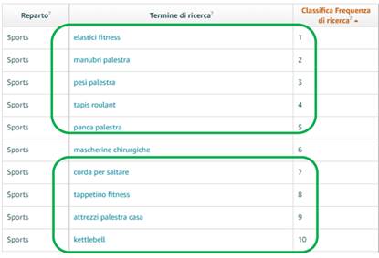 Lo stare in casa ha indotto gli amanti del fitness ad allenarsi tra le mura domestiche e dall’8 marzo si è scatenata una ricerca di attrezzi utili per tenersi in forma: elastici, manubri, pesi, tapis roulant, panche, corde e tappetini. Fonte: termini di ricerca Amazon Anche il reparto casa e giardino di Amazon è stato “movimentato”: friggitrici e planetarie gli oggetti più ricercati ma anche impastatici, sacca à poche e frullatori. E la tendenza a rimanere in casa, visto il tempo a disposizione, ha indotto tanti a preparare cibi da conservare. Si spiega probabilmente così il picco di ricerche di congelatori a pozzetto e congelatori verticali.