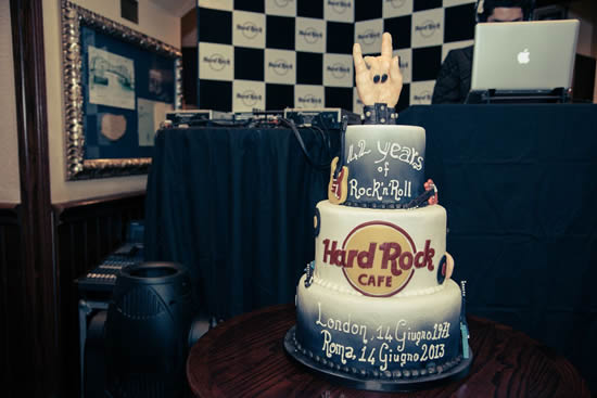 Un venerdì di grande musica all'Hard rock cafe di Roma, per festeggiare i 42 anni dei ristoranti rock più famosi al mondo. Tutto lo staff del cafe vestiva anni '70 indossando abiti originali forniti dalFashion Store "Retro'- Milano. Ad aprire la festa, il dj set di dj Freenote, alias Fabio Villanis, che è anche il Vibe host di Hard rock cafe Roma. A pochi passi da lui, due ballerini professionisti come Elizabeth Santoro che ha lavorato nel corpo di ballo dell'ultimo spettacolo di Enrico Brignano e Leonardo Bonfitto, reduce dal freschissimo tour di Renato Zero.