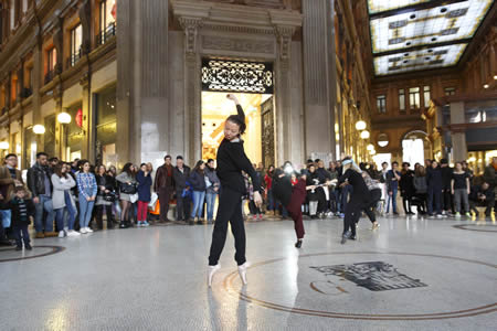 Roma, Galleria Alberto Sordi 6 febbraio 2016 dalle ore 16 alle ore 18 Quattro Flashmob degli Allievi del Biennio di composizione della Scuola di Coreografia dell’Accademia Nazionale di Danza, coordinati da Enrica Palmieri hanno animato il sabato pomeriggio della capitale. Sul tema dell’Equilibrio (titolo del festival che la Fondazione Musica per Roma dedica ogni anno alla nuova danza), i quindici giovani danzatori, con Massimo Carrano alle percussioni, hanno di fatto creato una anteprima a sorpresa del festival che si svolgerà all’Auditorium dal 9 al 28 febbraio