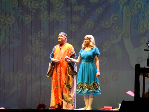 "Sogno di una notte incantata" liberamente ispirato a un racconto di Gianbattista Basile "Lo cunto de li cunti", per la regia di Fabrizio Bancale. In scena accanto alla star napoletana, in scena l'attrice Teresa Del Vecchio e i musicisti Luca Urciuolo, Alessandro de Carolis, Ivan Lacagnina, Paolo del Vecchio. Barra porta in scena i colori e il mondo fantastico barocco che nel '600 ha dato lustro proprio a Basile, divenendo, successivamente, il mentore dei futuri narratori di fiabe. Qui, in un mondo fantastico, la trama de "I sette palombelli" da il via alla narrazione, che racconta più storie in una, portando in scena umori, satira, poesie, visioni e musica di un mondo che a distanza di secoli, appare ai nostri occhi, sempre lo stesso. Non a caso i proverbi, che ci arrivano dal passato, sono tanto attuali, come lo sono le storie che prendiamo da esso. Divertente, dissacrante, sulla scena Barra è un maestro che non si risparmia, non molla e racconta, si trasforma, canta e fa cantare, parla e fa riflettere, sorridere, ridere, mantenendo uno stretto contatto con il pubblico che lo segue, a volte parla con lui preso dall'emozione e dallo spettacolo. Affiancato da una eccellente Teresa Del Vecchio, più di una spalla, che sa trasformarsi come il maestro, sa seguirlo, anticiparlo e regalare una stupenda interpretazione all'interno dello spettacolo, che appare perfetto. La scena si anima grazie alla tecnologia e, sullo sfondo, illustrazioni e animazioni presentano e fanno rivivere personaggi citati, racconti, grazie al sapiente intervento di Alessandro Papa e Mariano Soria, e ai disegni di Irene Servillo. Il passato che si fonde con il presente nella musica, nelle illustrazioni, nella parola, la lingua "alta" di Basile e il napoletano dei nostri tempi. Una perfetta armonia che Barra regala al pubblico. E il pubblico apprezza, tanto da applaudire, quando può il grande attore e riservando a lui e ai suoi compagni di viaggio, un'ovazione, un applauso lunghissimo per un lavoro che porta al centro della cronaca il maestro Barra. Ascoltarlo è un privilegio, lo spettacolo ti resta dentro e te lo riporti a casa felice di aver assistito a un successo simile. |