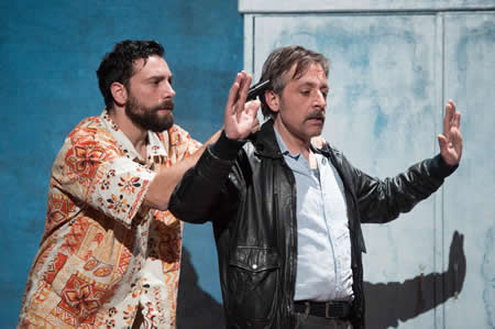 Foto: TOMMASO LE PERA Maradona è meglie e’ Pelè racconta le vicende di Aitano e Regina, che per sopravvivere e dare un taglio alla loro vita fatta di tanti sacrifici, “vendono” il loro corpo, ingoiando degli ovuli di cocaina. La vicenda si svolge in un albergo di Napoli, dove arriveranno due bizzarri narcotrafficanti, che insieme ad Eduardo, tutto-fare della struttura in cui alloggiano i nostri protagonisti, dedito a vendere pezzi del muro di Berlino “Signurì o’ vulite fa n’affare?” , daranno vita a situazioni esilaranti. La drammaturgia, ricca di colpi di scena, affronta un tema cosi drammatico e serio con estrema ironia e comicità, come nella migliore tradizione della commedia italiana.