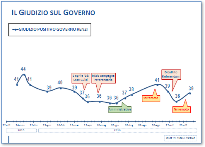 Il giudizio sul Governo è crollato nuovamente dopo il picco positivo estivo, oggi si segnala una nuova , ma ancor debole ripresa.