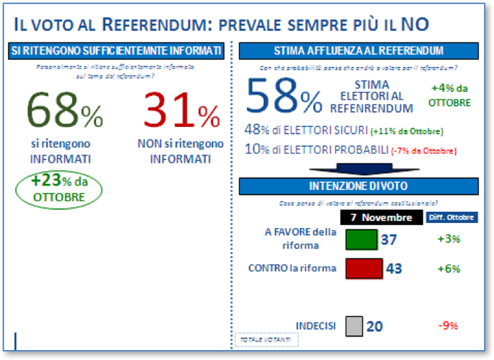 ![]() Effetti di una campagna elettorale “drogata”: secondo gli italiani vincerà il NO