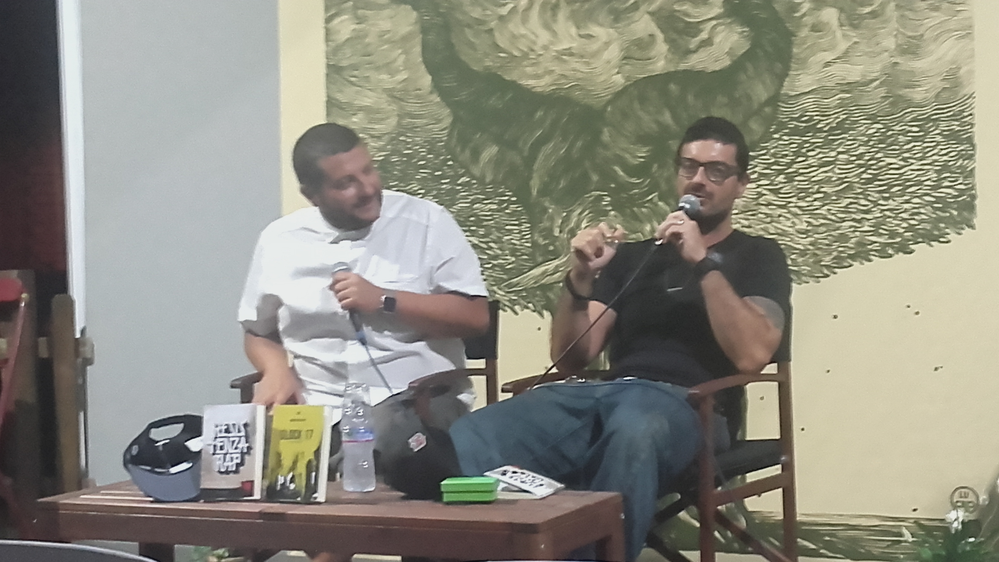 Siamo al terzo appuntamento, con Glock 17 La Pazienza dell’Odio di Emanuele Bissattini, che con Kento, autore di Resistenza Rap sempre per Round Robin edizioni, si è esibito in una doppia presentazione lunedì 28 agosto a Castel Sant’Angelo, Letture lungo il fiume, data fissa dell’estate romana. Giornalista, storyteller, sceneggiatore, scrittore l’uno, rapper, autore e poeta l’altro. I due si destreggiano con le parole come trapezisti nell’aria, alleggerendo il peso della loro scrittura con battute e domande. Si sono preparati una serie di foglietti con domande stronze e domande intelligenti e a turno se le pongono, rispondendo ciascuno come si sente. Per Emanuele Bissattini il tour di presentazioni è già al pieno almeno a Roma, attende altre date e ammette che finora con il libro non ha guadagnato un euro. Non è un brutto segno, ci rincuora averlo letto visto che il romanzo è una bomba vera. Un colpo al cuore. Un calcio in pieno stomaco. Un noir perfettamente costruito, equilibrato, intenso e denso di fatti e personaggi come sottolinea Kento, il rapper calabrese che sembra conoscerlo molto bene. Ogni pagina è un evento, una sorpresa, la violenza corrode le righe e le diluisce in un lento incedere verso l’inferno. Cruento e crudo come nella migliore tradizione di Ellroy o Bunker, ma qui i riferimenti fanno solo da cornice perché Emanuele ha proprietà di penna, ha uno stile tutto suo originale e unico, come specchio di una realtà, quella della strada, che non lascia scampo. Non ha conosciuto direttamente la strada, la sua origine borghese lo ha preservato, ma il suo istinto lo ha portato nelle periferie per incontrare il male, fino a farsi puntare una pistola in testa per vedere che si, è possibile cha accada. Ha iniziato a scrivere a nove anni poi ha saputo che Tolkien aveva iniziato a otto e ha quasi smesso. Lo racconta sorridendo, ma come al solito i suoi riferimenti sono sempre dei grandi. Kento lo paragona a un certo Gadda di quel brutto pasticciaccio, una Roma scomposta, compromessa, delusa, marcia, attraversata da fiumi di coca e malavita, dove un colpo secco ti arriva nel buio e ti uccide. Nell’appartenenza ritorna il senso, quello della vita che Emanuele sente di dover raccontare attraverso gli occhi della strada, lui che non è mai appartenuto a nulla e nessuno riesce a raccontare le cose in maniera non allineata. Pratica le arti marziali e questo lo deve aver aiutato parecchio a immedesimarsi nello scontro, la lotta dove devi essere quello che sei, dove sei il colpo che scegli e nel momento in cui spezzi il gesto, è quella l’unica cornice di libertà che puoi permetterti. Animale simulatore e dissimulatore, vestito con jeans larghi e maglietta nera attillata che nasconde molto male i tatuaggi impressi sulle braccia muscolose, Emanuele quando parla inietta pathos, la pronuncia leggermente rotacizzata vorticizza i pensieri obbligandoti a seguirlo nei gangli della sua mente in una confusione che solo alla fine risolve il suo mistero, regalando luce. Rivelazioni sottintese, citazioni nascoste, le incontri tra un delitto e l’altro, tra uno schizzo di sangue e un cervello saltato in aria. I ritratti di questa Roma balorda sono precisi e determinati come lame affilate, si sente l’aria rarefatta, carenza di ossigeno, morte imminente. È come se i personaggi avessero giocato a prendere l’anima e buttarla giù da un dirupo, rimanendo in brandelli di corpo e pelle senza contenuto. “Da una parte le guardie, dall’altra i criminali, in mezzo i disperati che si sbattono per la roba, vivono da formiche e rimbalzano come palle da flipper sui muri di travertino di una Roma misera che per gli altri, per i normali, non esiste più da almeno un secolo”. E la strada come palcoscenico “la strada è un posto di merda. Non ci sono regole, non ci sono valori. Tutto ha un prezzo, soprattutto i sogni. Se la strada è la tua prospettiva , i sogni non ce l’hai. Non puoi mai fidarti di nessuno”. Emanuele è convincente e persuade con i dialoghi serrati frutto di ore passate ad ascoltare storie. Le sue grandi mani da lottatore si muovono come circonvallazioni mentre parla del sangue che butta quando scrive, della sofferenza che prova mentre descrive la violenza ma le sue mani non sono ancora abbastanza sporche, non sono ancora abbastanza rovinate, il sangue si sente ma non si vede. Manca poco, ce la farà. Come ce la fanno i suoi ritratti, il Gatto e il suo Sigmund che non ha nulla a che vedere con Freud ed è descritto come un “camaleonte che trova quiete dietro il banco di fiori di fronte a Regina Coeli”. La gentilezza dei loro cuori spezzati e il desiderio di vendetta e giustizia periferica che nessun regolamento potrebbe imbavagliare. Una scarnificazione dell’ego per dirompere in un mondo brutale e asfissiante, una catarsi lenta e ghiacciata come un ferro carico sul collo. Leggetelo tutto d’un fiato, non lascerà un attimo di respiro.