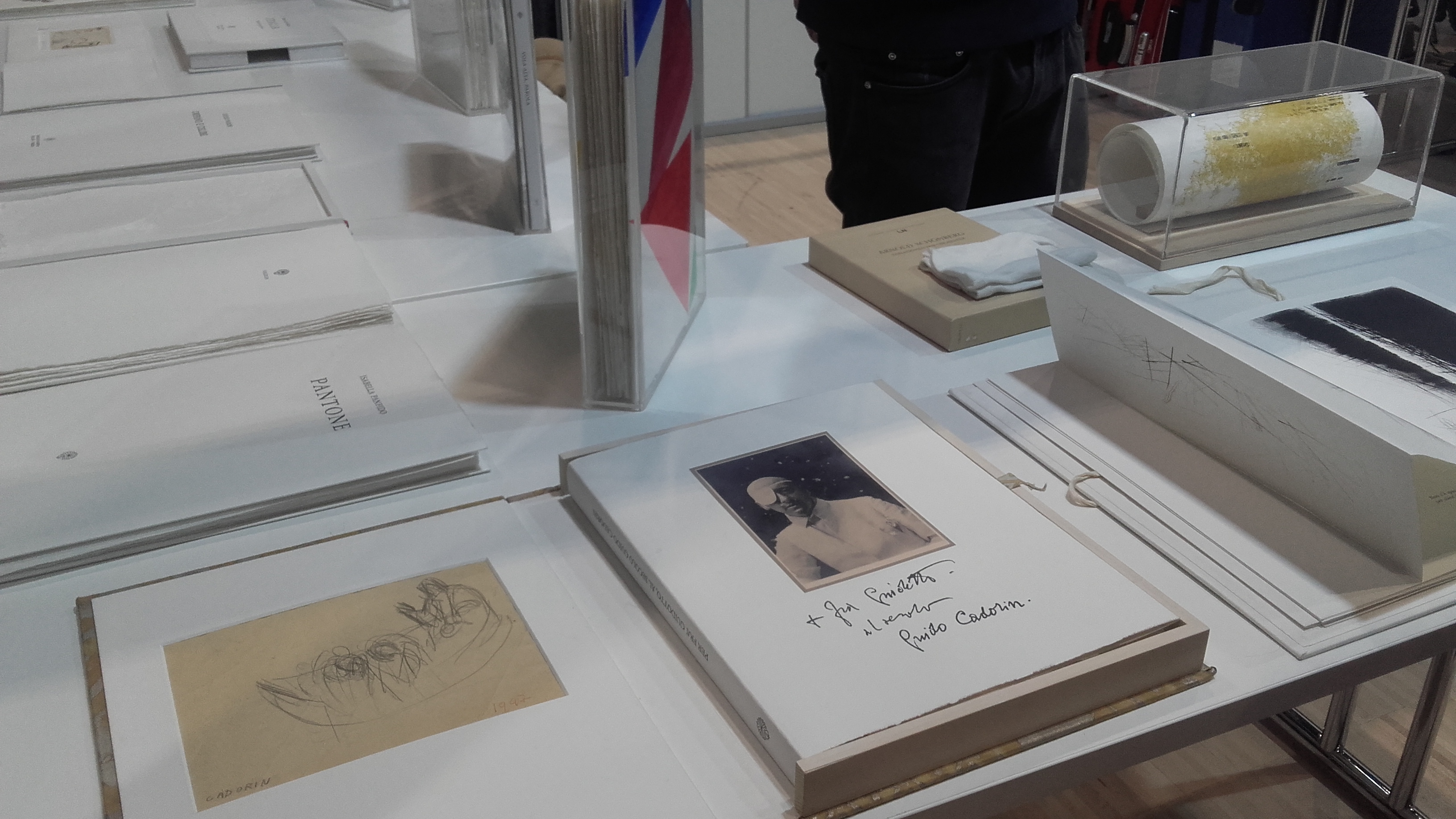 Fotografia della nostra inviata Susanna Schivardi Per i più grandi invece abbiamo scovato il raffinatissimo stand di Colophonarte di Egidio Fiorin con sede a Belluno. “sono veri libri d’artista, dove l’opera è il libro stesso, confezionato con carta di cotone al 100% che può essere maneggiata solo con guanti di stoffa – tende a precisare il rappresentante nello stand- sono molti a collaborare alla realizzazione di questi preziosissimi oggetti, molto grandi, con pagine ancora da staccare, tanto che alcuni ne prendono una doppia copia per tenersene una sempre chiusa”. A guardarli si inebria lo sguardo per la preziosità dei tratti, dei colori, la grana della carta e alcune confezioni loro stesse opere d’arte come nel caso del volume di Pomodoro, in vero bronzo, dedicato all’amico Claudio Abbado, per il prezzo di 22.000 euro. Alcuni sono addirittura confezionati come veri rotoli da appendere al muro sotto teche di vetro e da srotolare come opera d’arte in sé; un drappo anche di 2 metri con sistema di aggancio come nel caso della Carta Internazionale dei Diritti dell’Uomo. Le cartiere collaboratrici sono ormai poche, famose sono Amatruda di Amalfi o la Fabriano. La sera si avvicina, le file ancora in attesa, sembra una prima serata all’Opera. La Fiera fa anche questo, far sognare chi la visita, aprendo mondi sconosciuti, artisti, scrittori, autori in fervida attività inesauribile. Le premesse per continuare con successo un percorso iniziato sedici anni fa, in attesa del prossimo anno, la Nuvola si ritira per altre splendide occasioni e saluta con grazia, appesa tra cielo e terra dove la fantasia, libera di esistere, si inebria di un cielo stellato. |